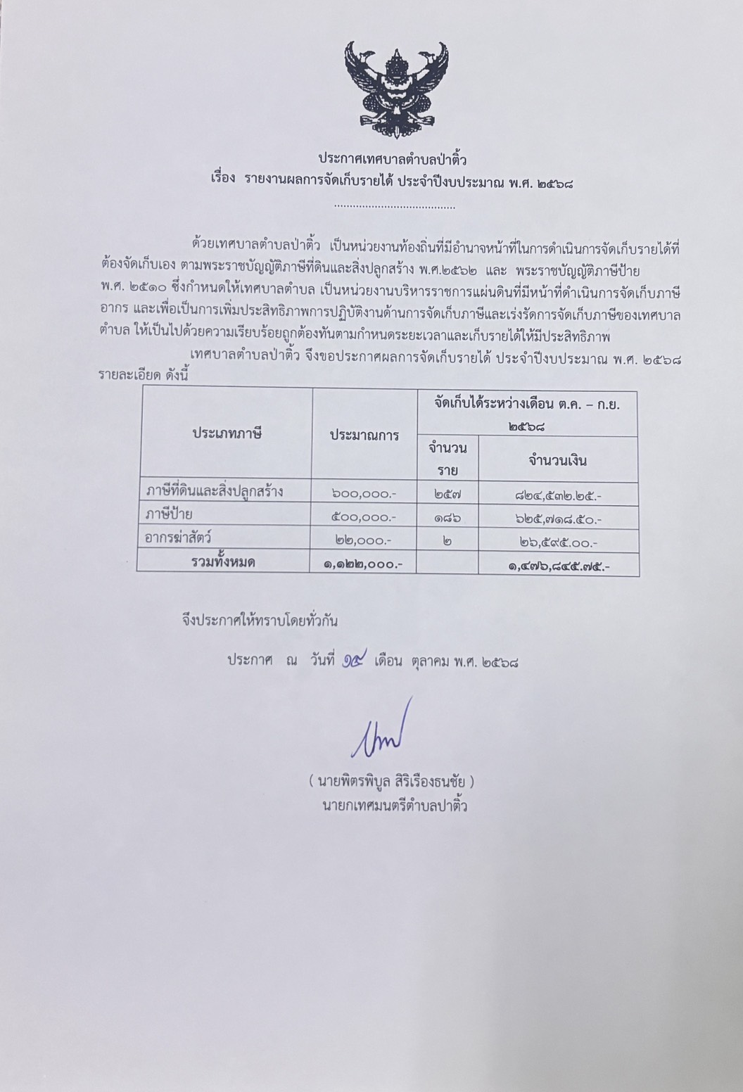 ท่านมีความคิดเห็นว่า เว็บไซต์สำนักงานเทศบาลตำบลป่าติ้ว มีประโยชน์ต่อประชาชนในเทศบาลตำบลป่าติ้วในด้านใดมากที่สุด